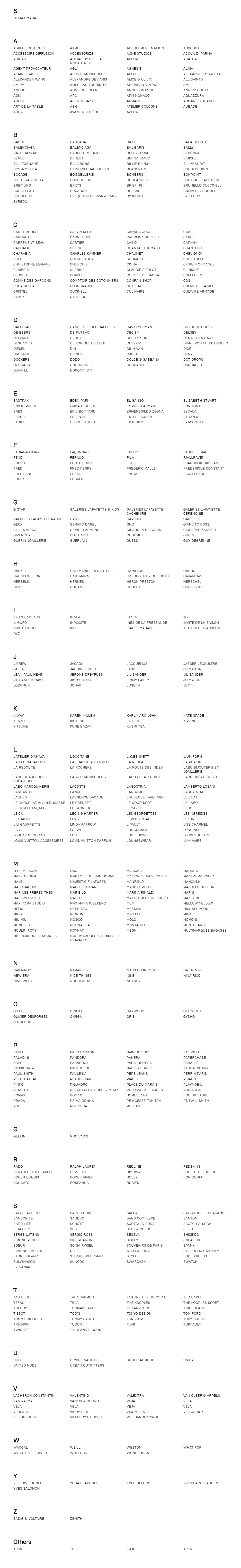 갤러리 라파예트에 입점한 브랜드들입니다.