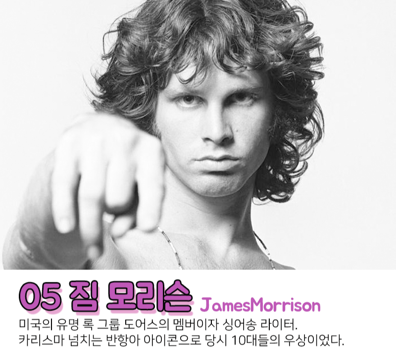미국의 싱어송라이터로 사이키델릭 록과 블루스 록의 발전에 기여한 록 그룹 도어스The Doors의 멤버였던 #짐모리슨